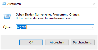 Zum Öffnen des Registry Editors am besten die Tastenkombination [Windows]+[R] drücken und in das Eingabefeld regedit eingeben. Mit der Schaltfläche Ok startet Ihr dann den Editor.
