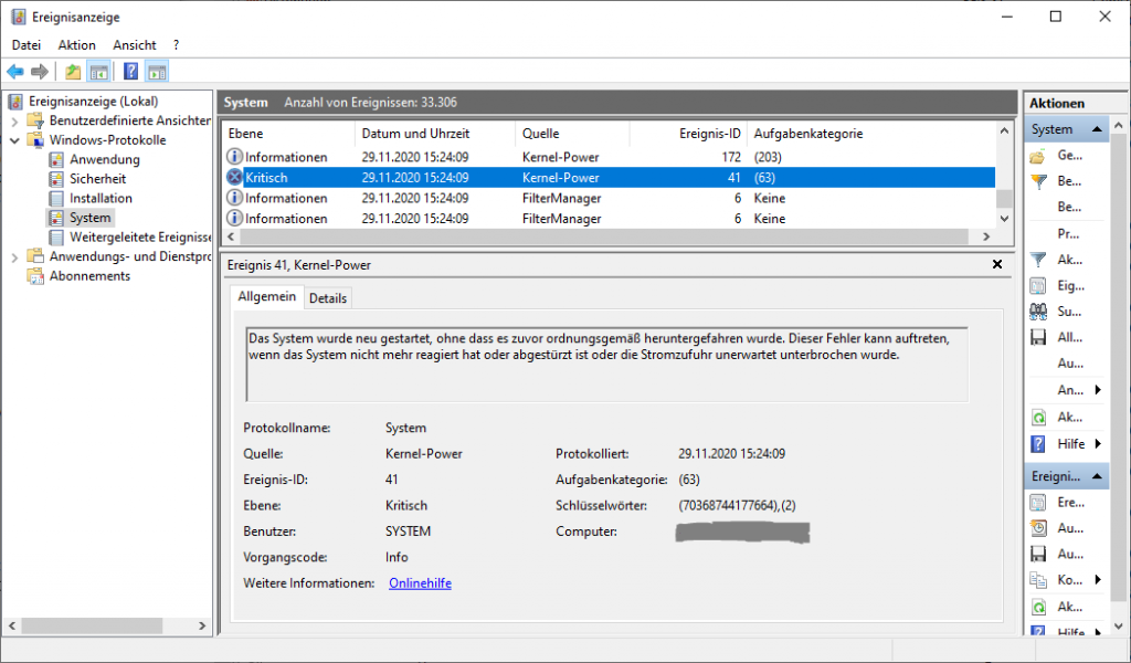 Das Problem begann vor ein paar Jahren. Es wurde mal wieder Zeit für ein Grafikkartenupdate. Die neue Grafikkarte war schnell installiert und schon konnte es losgehen mit der Zockerei. Doch leider kam der Frust relativ schnell, als der Rechner nach ein paar Minuten spielen plötzlich einfror und dann einen Reset durchführte. In der Ereignisanzeige wurden mehrere Fehler gemeldet, u.a. ein kritischer Fehler des Kernel-Power Moduls.