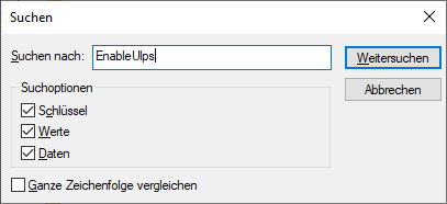 Ändert dabei nur den Eintrag EnableUlps. Der Eintrag EnableUlps_NA soll auf seinem Wert bleiben!